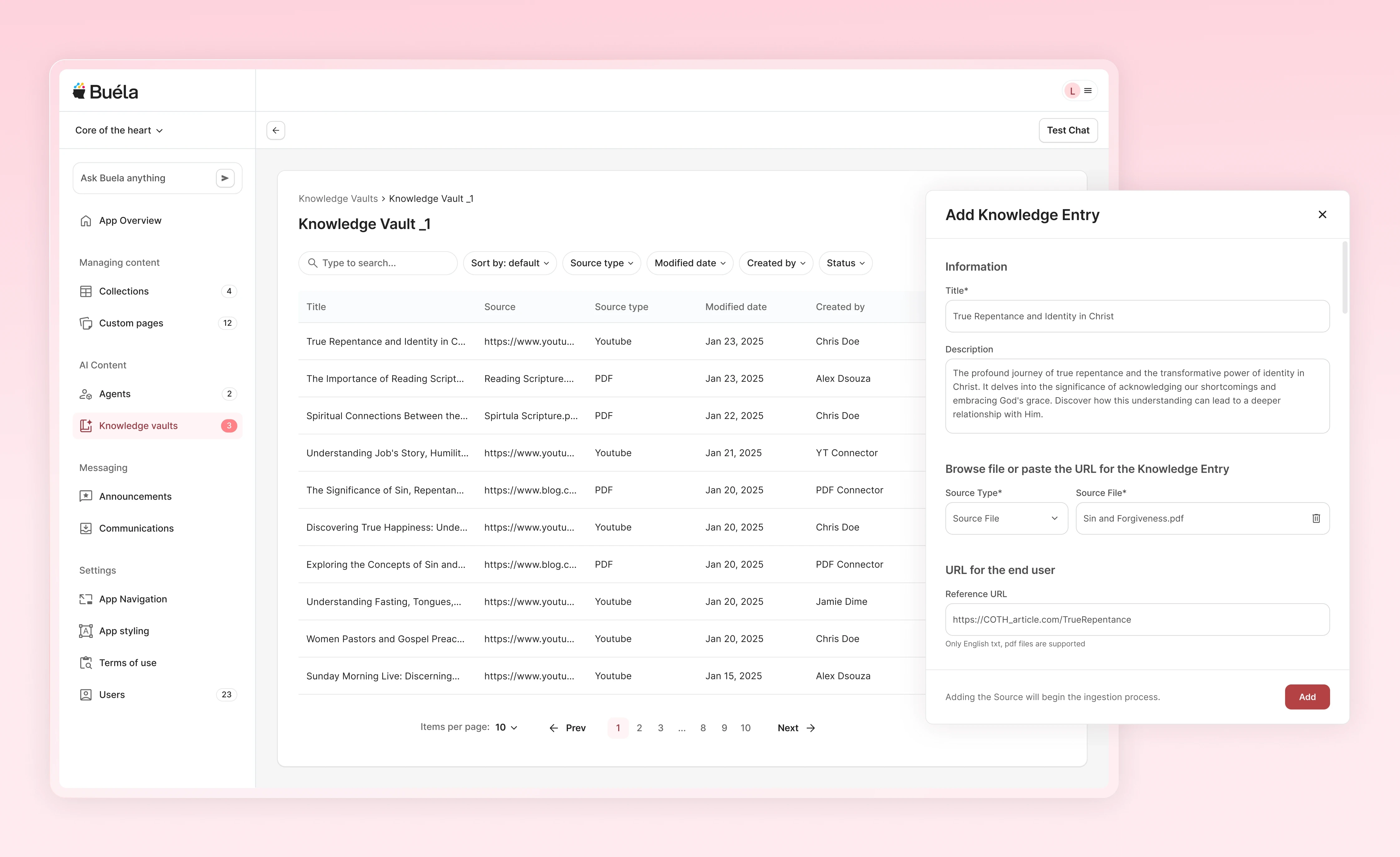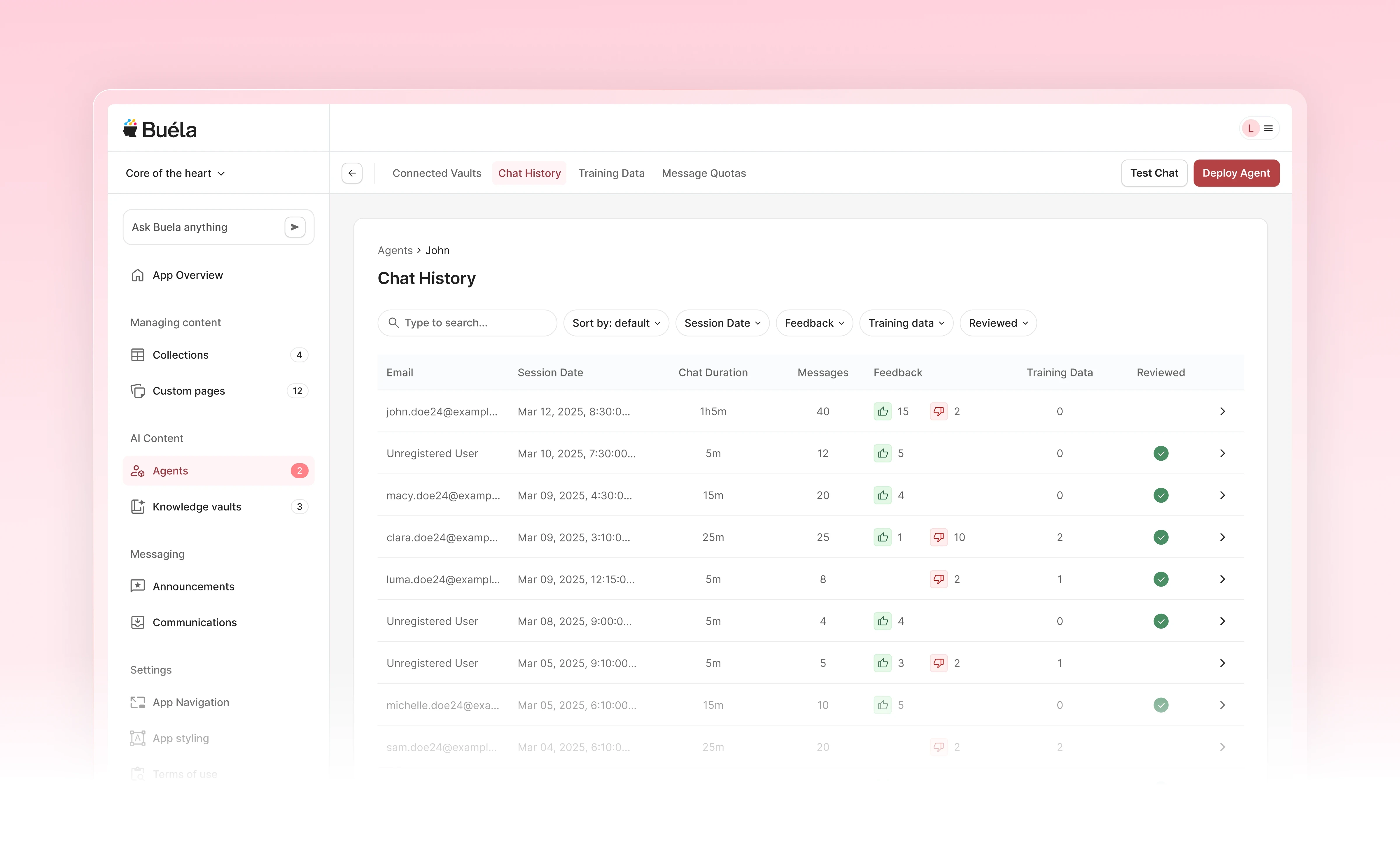 Buela — now rebranded as Easy Mate — is an AI agents management platform. As a Product Design Consultant, I designed the first version of the product from the ground up. The platform enables non-technical users to build knowledge vaults, create AI agents, and train agents based on content created by the influencer.