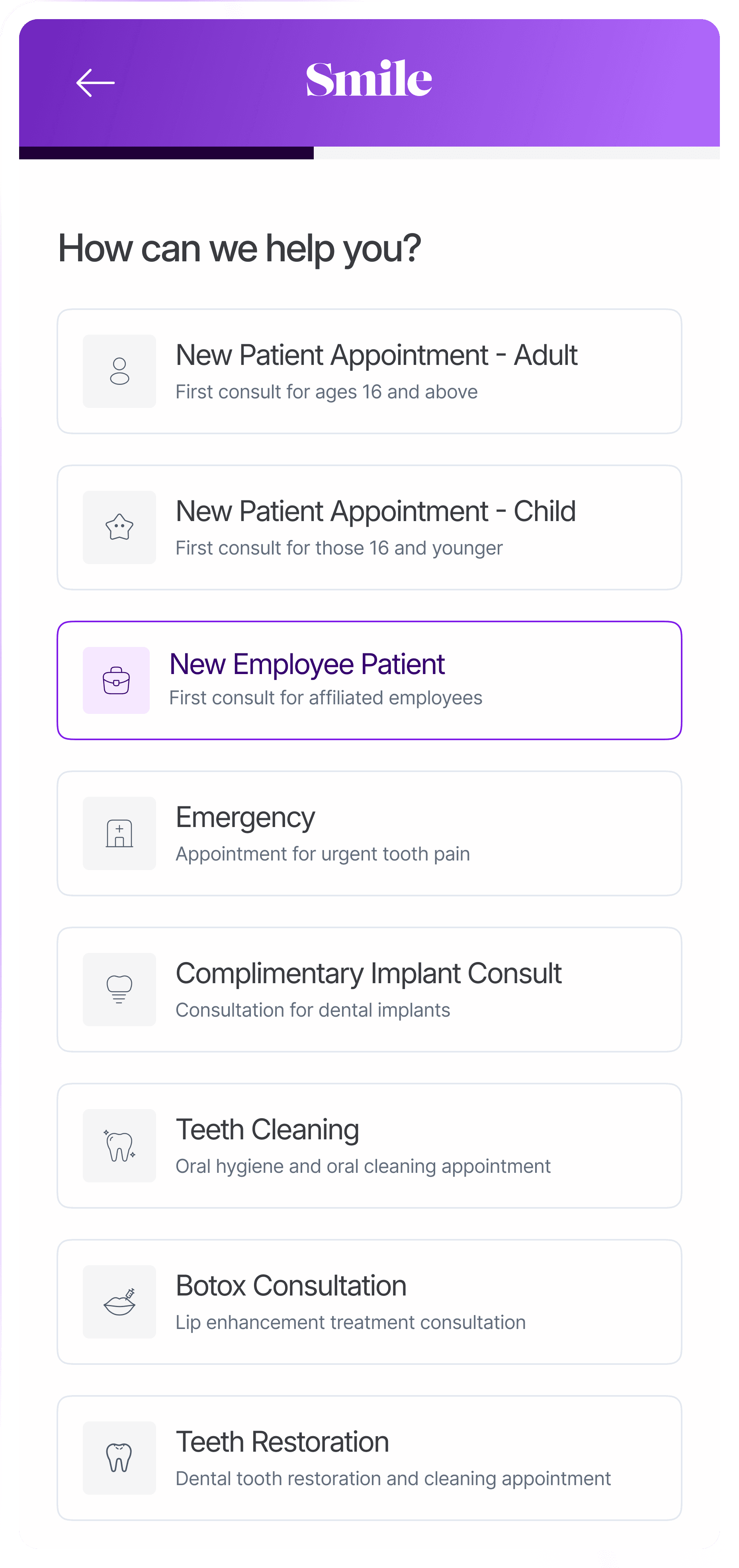 Smile - designing patient booking experience